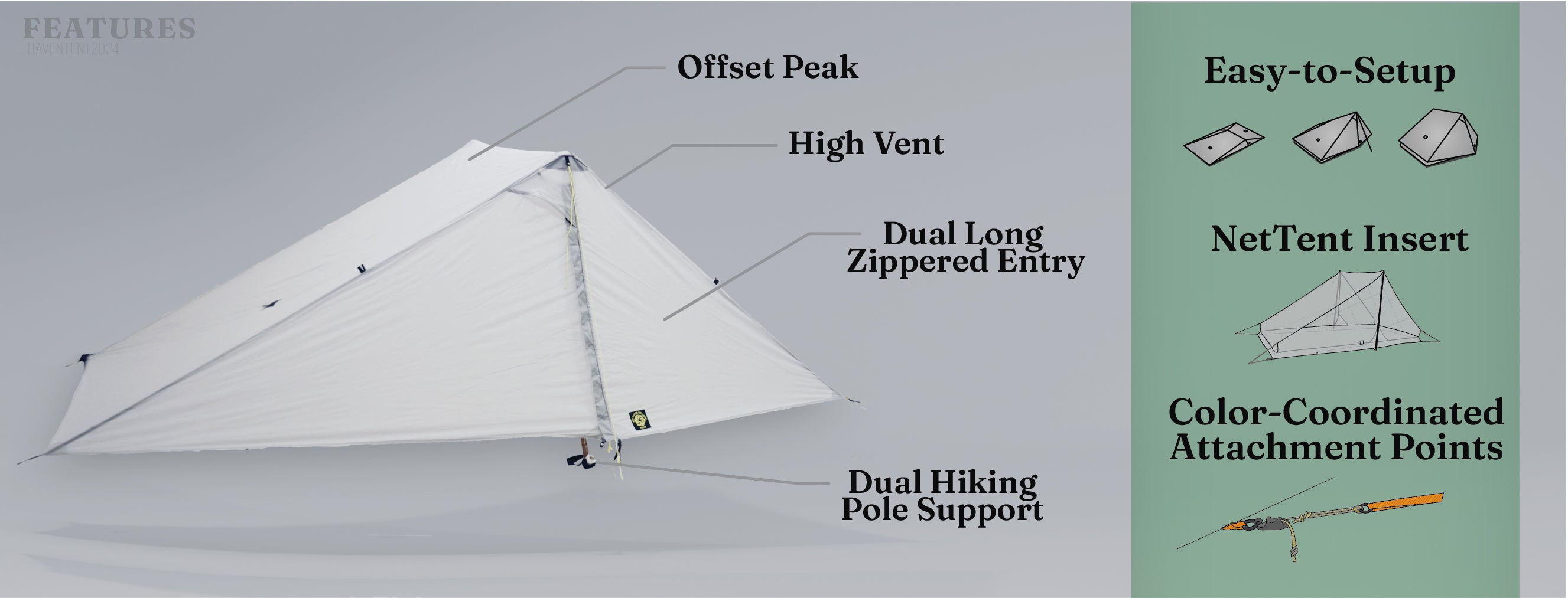 The Haven Ultralight Tent now includes the Haven Tarp and the Haven NetTent, formerly called the Haven Bundle.