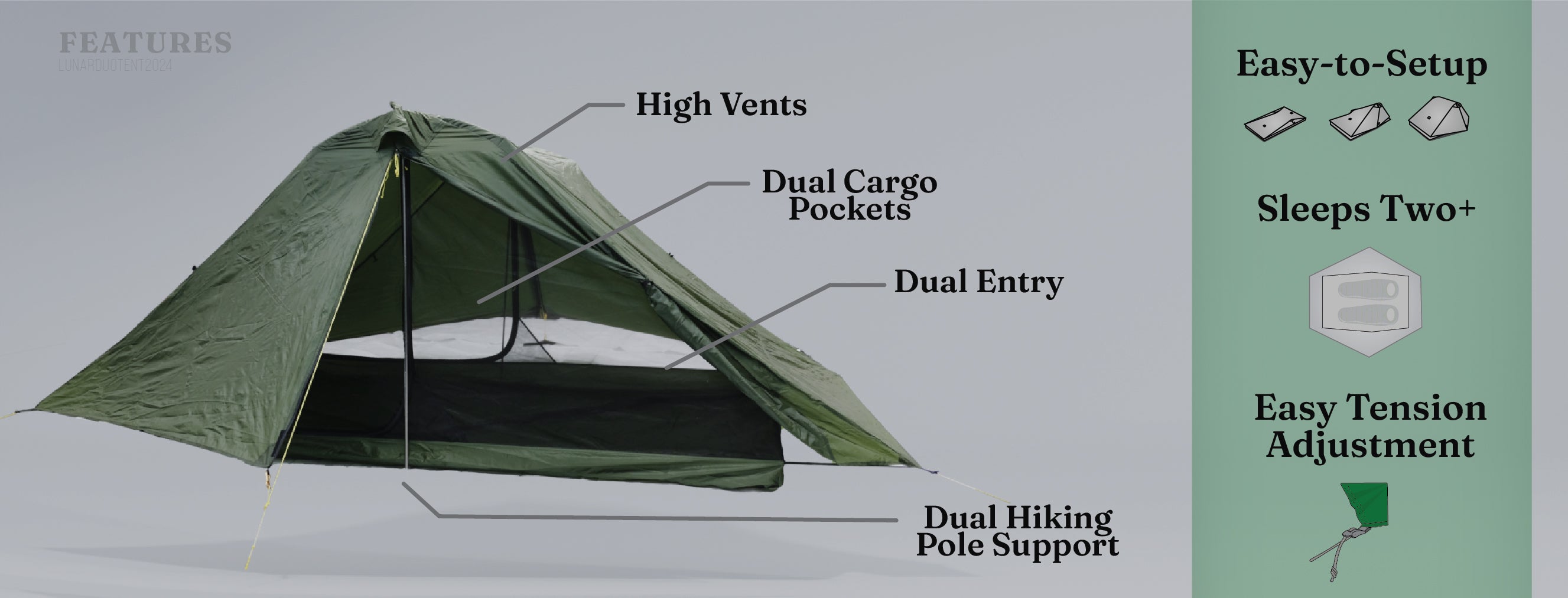 Spacious. Secure. Ultralight. The Lunar Duo redefines what a single wall, ultralight tent can be.